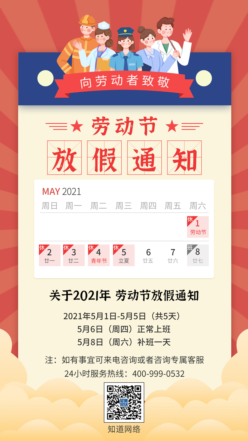 【知道網(wǎng)絡(luò)】五一勞動(dòng)節(jié)放假通知