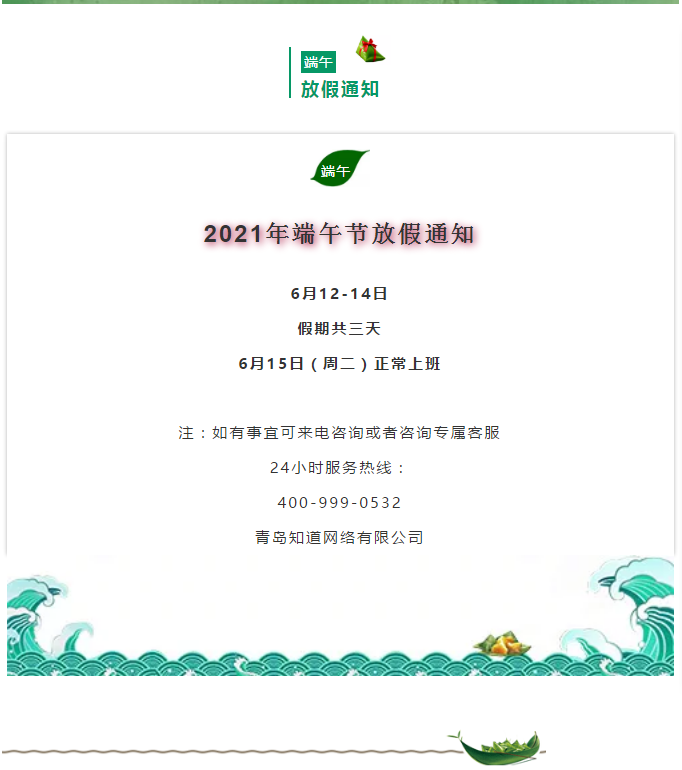 【知道網(wǎng)絡(luò)】端午節(jié)放假通知