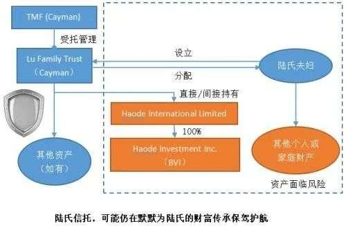 陸和錢的家族信托可能因為股權(quán)投資減值而縮水,其信托架構(gòu)可能由于債權(quán)人、受益人等的申請而被拆除。如果信托下層公司涉及股票抵押、貸款違約等合同行為,也要承擔自身層面的經(jīng)營風險。