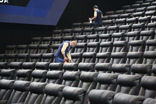 對(duì)于衛(wèi)生消毒,該版《防控指南》根據(jù)電影院的不同區(qū)域制定了相對(duì)細(xì)節(jié)的規(guī)定。其中,對(duì)于大堂、影廳、衛(wèi)生間、走廊、疏散通道等公共區(qū)域,《防控指南》指出,需每日不少于2次噴霧消毒;售取票機(jī)、商品售貨區(qū)、自動(dòng)販賣機(jī)、公共區(qū)域座椅、入口閘機(jī)、衛(wèi)生間等重點(diǎn)區(qū)域,則需要每日不少于5次擦拭消毒;而在影廳座椅扶手、3D眼鏡等觀眾直接接觸物品,電影院需每場(chǎng)消毒一次;此外,電影院需要做好入場(chǎng)檢測(cè),登記觀眾信息,檢查體溫,并在電影院入口配備手消毒劑。