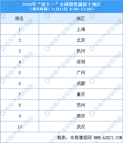從地區(qū)來看,上海地區(qū)全國銷售額最高,北京排名第二,杭州、深圳、廣州位列其后。