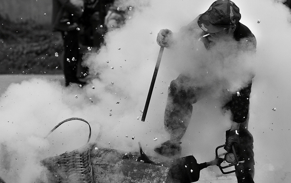 一個(gè)黑溜的鐵球,把米或玉米拌著糖精裝在球里面,一會(huì)兒工夫隨著蹦的一聲,想噴噴的爆米花就出來了,那時(shí)候這真是美味?。。。ìF(xiàn)在馬路邊還是能經(jīng)常見到的)