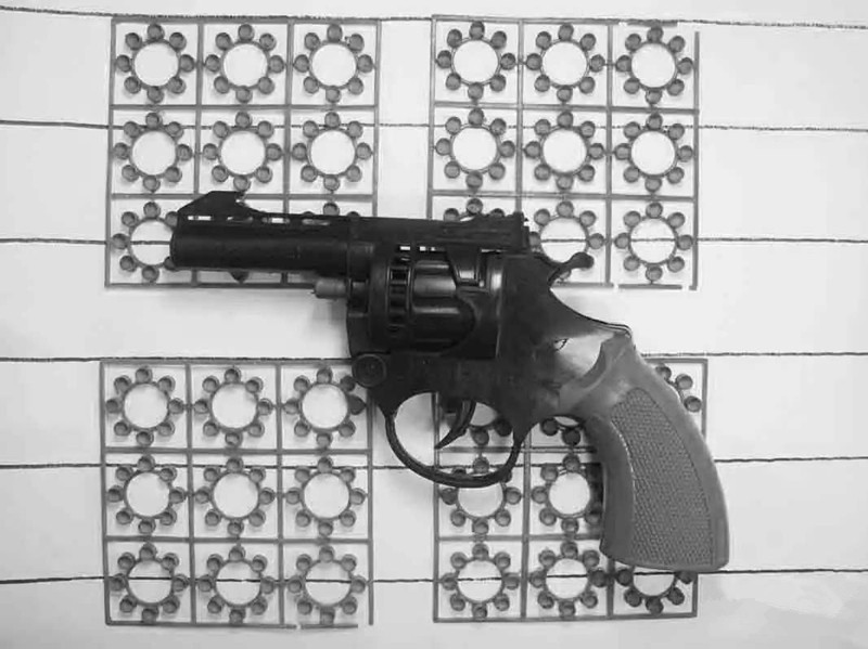 有一種槍,不會(huì)打出子彈,但是裝一種火藥味道的圓盤,打一下會(huì)有很大的聲音和火花!?。?!