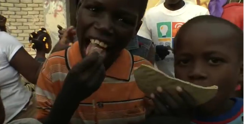 在海地,人們將濾去碎石和土塊的泥漿加入鹽攪拌,并用勺子把厚重的泥漿攤成餅狀,然后把它們放在太陽(yáng)下曬干。在當(dāng)?shù)氐氖袌?chǎng)上六毛錢可以買5個(gè)泥餅。