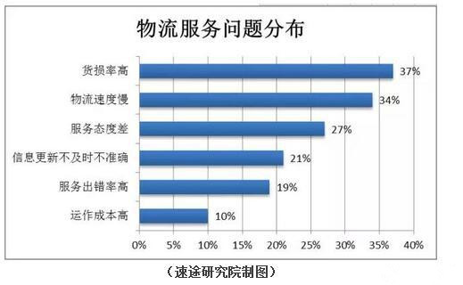 在快遞行業(yè)迅速發(fā)展的同時,也催生了很多問題,例如快遞貨物運行的速度太慢,服務態(tài)度差,貨物丟失等問題,根據(jù)物流的調查顯示,人們反應最多的是貨損率較高,占比37%,雖然從包裝到運輸已經(jīng)極力避免貨物的損壞,但由于物流服務人員以及交通運輸?shù)雀鞣矫嬖?,貨物損壞仍會出現(xiàn),而且用戶心理出發(fā),一次貨物受損就可能由此引發(fā)對物流品牌的關注。