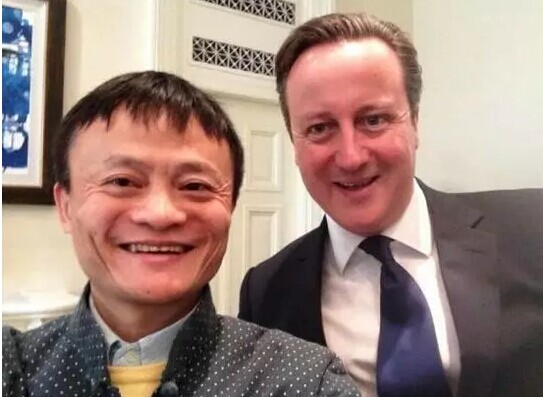 2013年,馬云和英國首相卡梅倫約會(huì)后,卡梅倫在推特上分享了兩個(gè)好基友的自拍照??穫惻c馬云共同見證了英國投資貿(mào)易總署與阿里簽署合作備忘錄。