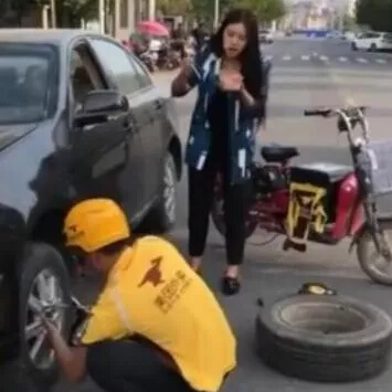 送餐順便換個輪胎▼