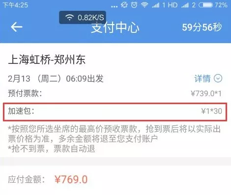 點擊下一步,付款界面,哎?價格怎么變成了769元,多的這30元是什么錢?