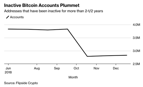 北京時間1月14日,對于比特幣來說,這要么是非常好的消息,要么是非常壞的消息。在這種開創(chuàng)性的加密貨幣上周崩潰之后,彭博社報道稱,隨著最近幾周數(shù)十個比特幣錢包如雨后春筍般涌現(xiàn),加密技術(shù)的一項有希望的發(fā)展可能意味著市場將迎來一波出售(或購買)浪潮。根據(jù)Flipside Crypto提供的數(shù)據(jù),不活躍賬戶數(shù)量大幅下降。