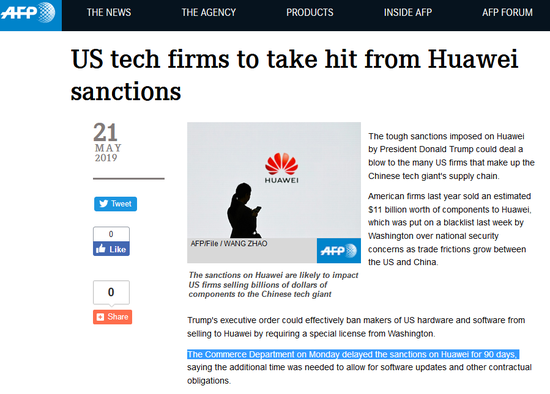 法新社剛剛消息,美國官員周一決定,將對華為的禁令延遲90天實施,直到8月中旬才會生效,理由是,華為及其商業(yè)伙伴需要時間來升級軟件以及處理一些合同義務(wù)問題。