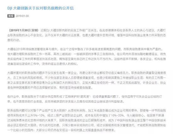 不僅僅是對(duì)公司內(nèi)部,職務(wù)腐敗還會(huì)對(duì)整個(gè)產(chǎn)業(yè)鏈產(chǎn)生多大影響?大疆在一封公開信中表示,從原材料采購(gòu)、加工半成品到最后成為企業(yè)可用的零件,即使每一環(huán)節(jié)的腐敗使得采購(gòu)成本只上升5%-10%,經(jīng)過(guò)三層產(chǎn)業(yè)鏈到達(dá)企業(yè)時(shí),成本在無(wú)形中增加了16%-33%,令人觸目驚心。