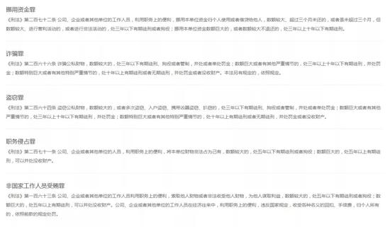 除了被公司辭退,在法律層面腐敗犯罪究竟會(huì)面對(duì)怎樣的刑罰?北京師范大學(xué)中國(guó)刑法研究所副所長(zhǎng)彭新林此前表示,在2014年到2017年,民營(yíng)企業(yè)腐敗犯罪中,共包括15個(gè)罪名,其中最主要的就是單位行賄罪、職務(wù)侵占罪、挪用資金罪、非國(guó)家工作人員受賄罪和行賄罪。
